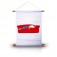 Feito em tecido branco com madeira nos dois extremos e um cordão para pendurar.